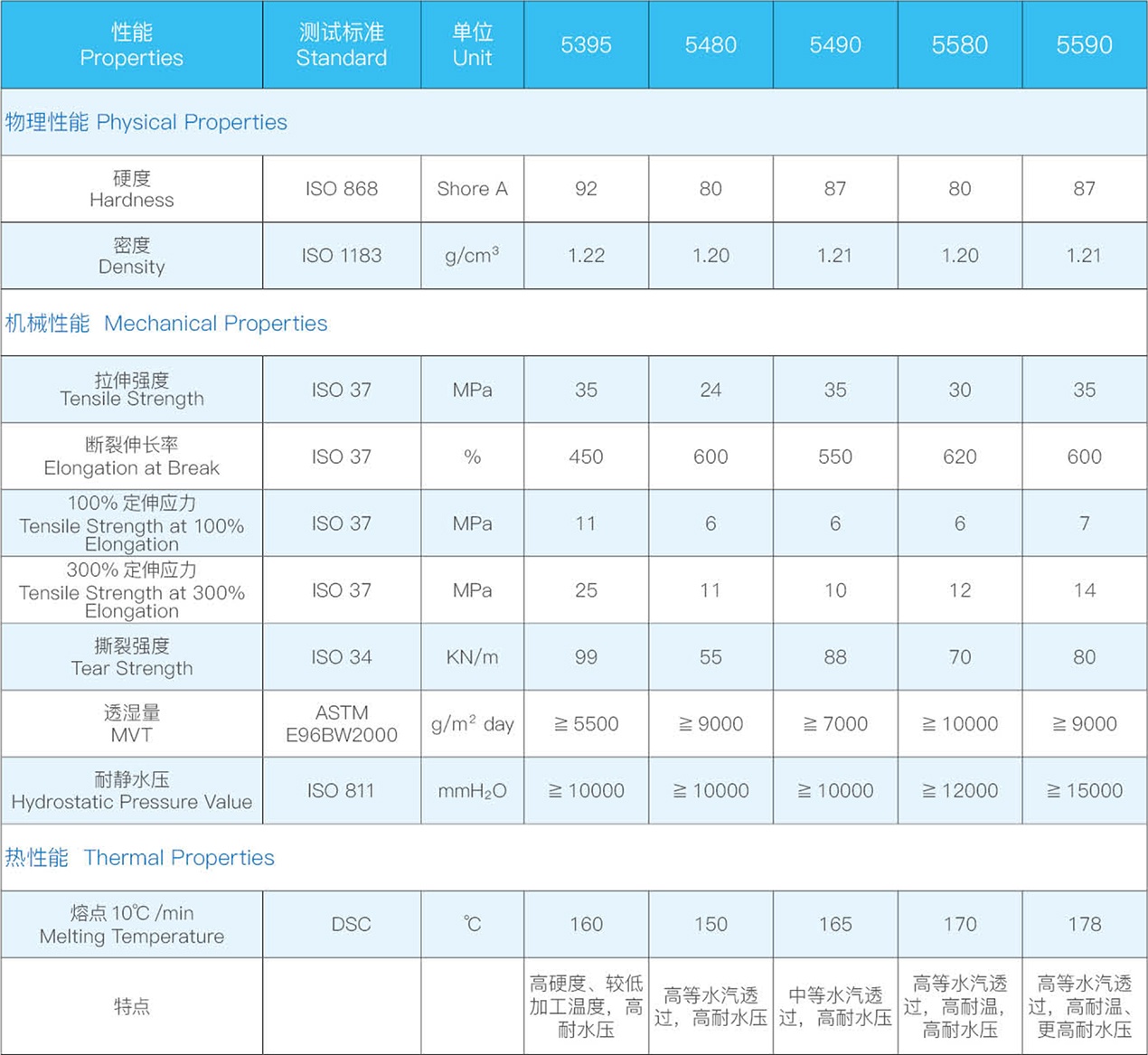 防水透濕聚醚型熱塑性聚氨酯彈性體(TPU)53/54/55系列